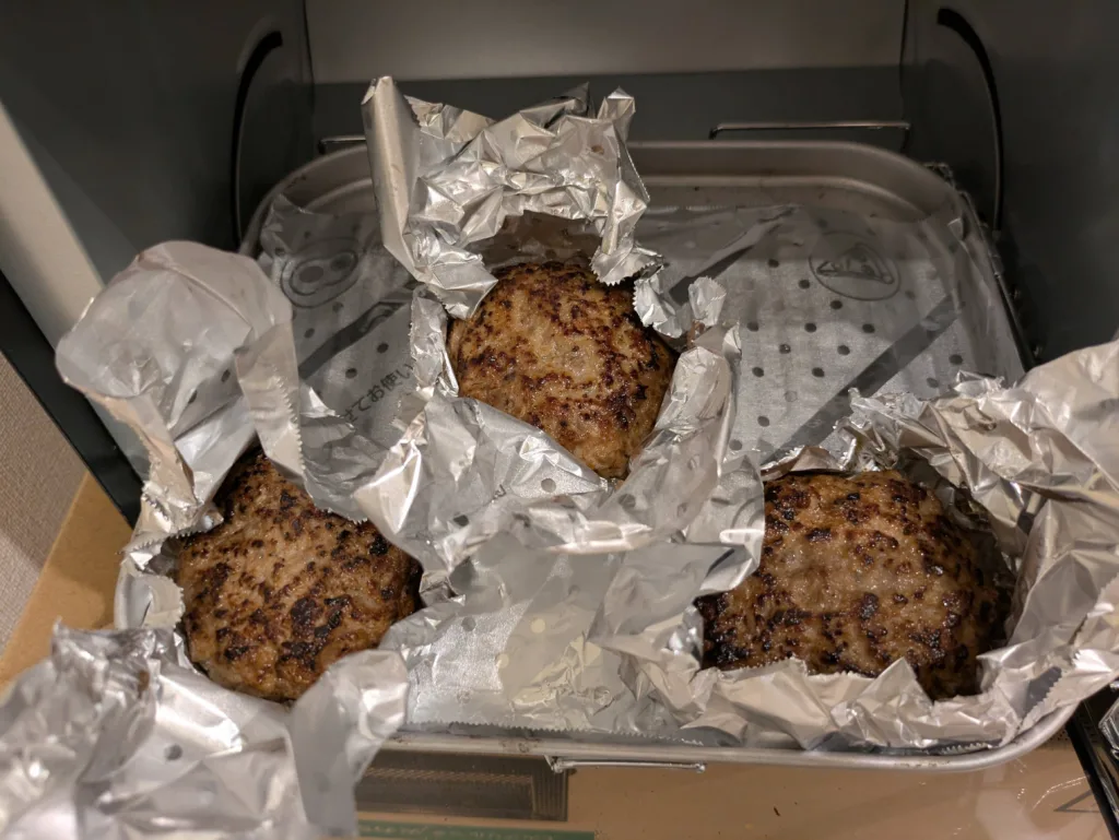 小さい頃から実家でよくオーブンで中までしっかり焼いたハンバーグを食べてたんだけど、それと遜色ないくらいジューシーで美味しいかったよ。やはり漢は黙ってハンバーグ一択!!
